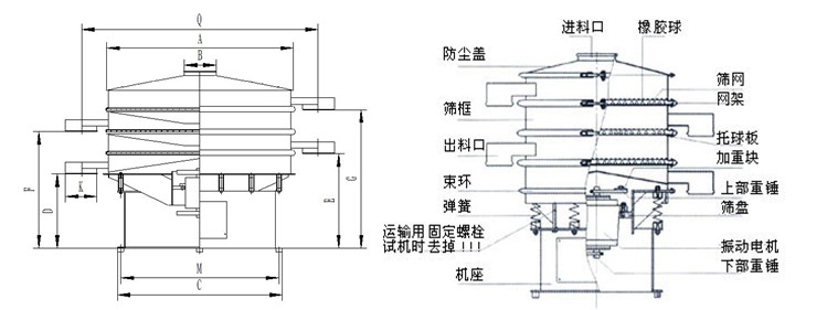 有效篩面直徑(mm) | Φ560 | Φ760 | Φ930 | Φ1130 | Φ1430 | Φ1730 | Φ1930 |